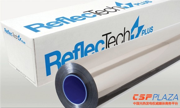 據CSPPLAZA記者從公開資料上了解到的信息,ReflecTech的反射膜是一種鍍銀高分子聚合物薄膜,由SkyFuel的全資子公司ReflecTech公司和美國國家可再生能源實驗室(NREL)聯合開發,其產品已經在NERL通過了能效測試,并在一個1MW的槽式光熱發電實驗回路中經過了18個月的運行測試后證明了其產品的可靠性。同時通過了11m/s風速的抗風測試,在超加速風化系統內對其進行測試,得出了其光學耐久性可達30多年的結論。