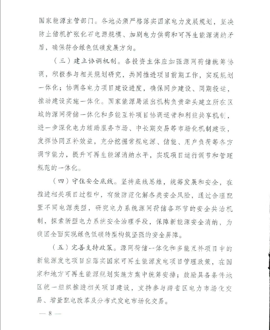 此外在完善支持政策方面,文件指出,源網荷儲一體化和多能互補項目中的新能源發電項目應落實國家可再生能源發電項目管理政策,在國家和地方可再生能源規劃實施方案中統籌安排;鼓勵具備條件地區統一組織推進相關項目建設,支持參與跨省區電力市場化交易、增量配電改革及分布式發電市場化交易。