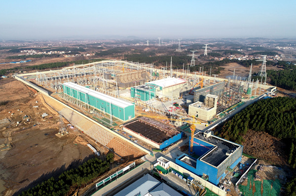 2021年1月1日,±800千伏武漢特高壓換流站建設現場,國網湖北送變電工程有限公司300多名施工人員放棄假日休息,加緊站內施工。鄒小民攝