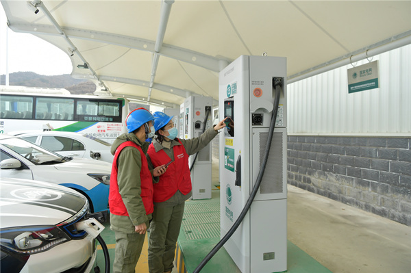 國網十堰供電公司工作人員對電動汽車充電站開展常態化巡視。郝金鑫攝