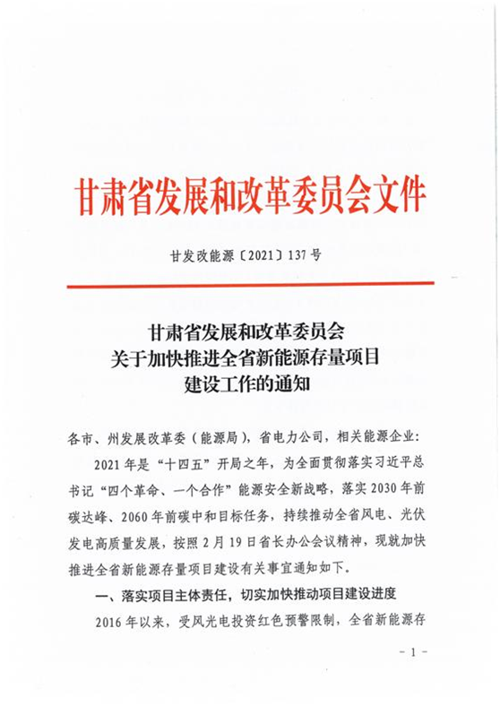 3月25日,甘肅省發改委發布《關于加快推進全省新能源存量項目建設工作的通知》(以下簡稱“《通知》”)。