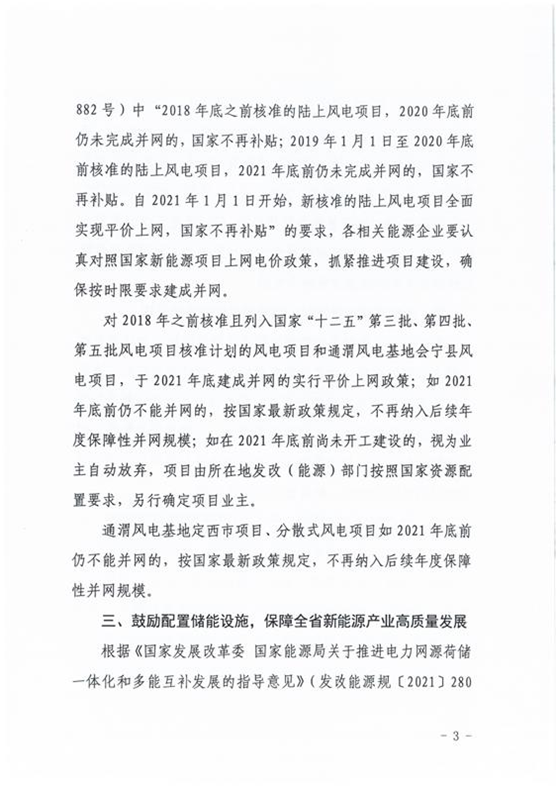 《通知》還對相關補貼政策的截止時間進行了強調,要求相關能源企業按照國家發改委《關于完善風電上網電價政策的通知》中“2018年底之前核準的陸上風電項目,2020年底前仍未完成并網的,國家不再補貼;2019年1月1日至2020年底前核準的陸上風電項目,2021年底前仍未完成并網的,國家不再補貼。自2021年1月1日開始,新核準的陸上風電項目全面實現平價上網,國家不再補貼”的要求,確保按時限要求建成并網。相關項目若未按時推進,將被取消相應資格。