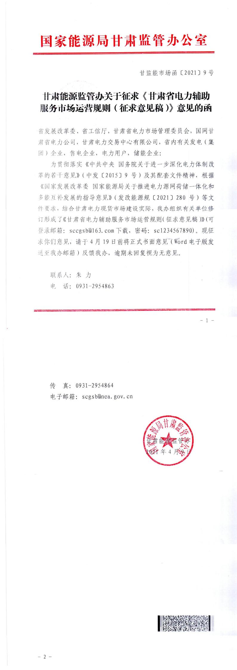 4月10日,國家能源局甘肅監管辦公室發布關于征求《甘肅省電力輔助服務市場運營規則(征求意見稿)》意見的函,意見稿規則較2019年發布的暫行補償價格有較大改變。調頻輔助服務補償價格由上限15元/MW下調至12元/MW。調峰輔助服務申報價格非現貨期間為0.5元/kWh,現貨期間為0.3元/kWh。