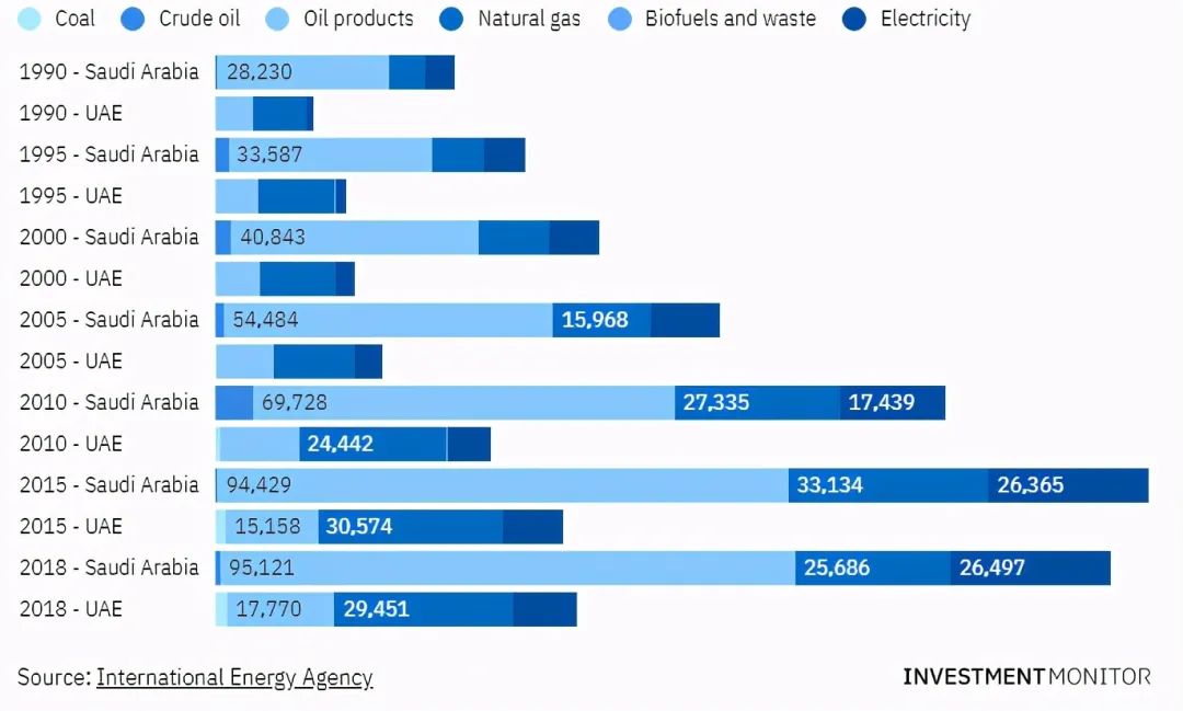 在阿聯酋和沙特阿拉伯,電力仍然只占總能源消耗的一小部分