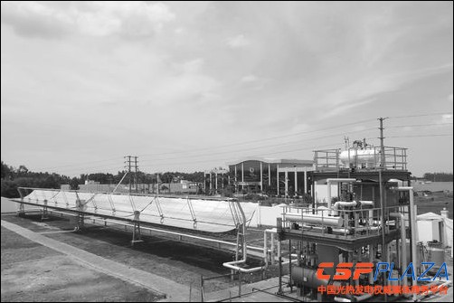 在海南臨高縣的實驗基地,現在可以看到三個大的設備,分別是槽式太陽能聚光器、海水淡化設備和熱工設備,他們共同構成了太陽能電水聯產實驗系統。