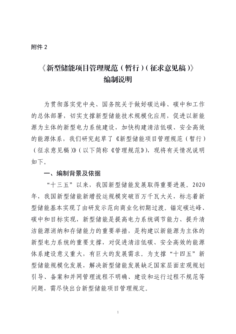 1、新型儲能項目管理規范(暫行)(征求意見稿)
