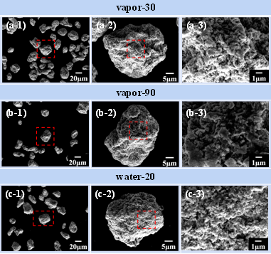 100次熔化-凝固循環后的掃描電鏡圖:(a)vapor-30,(b)vapor-90 and(c)water-20