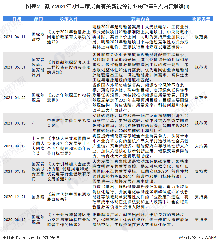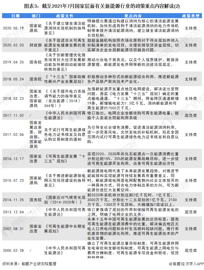 自2005年以來,國務院、國家發改委、國家能源局等多部門都陸續印發了支持、規范新能源行業的發展政策,內容涉及新能源行業的發展技術路線、產地建設規范、安全運行規范、能源發展機制和標桿上網電價等內容: