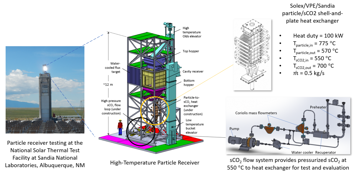CSPPLAZA光熱發電網訊:目前,來自美國桑迪亞國家實驗室(SNL)的一個太陽能研究實驗室正在積極開發一種創新的太陽能熱發電技術,即利用高溫鋁土礦顆粒作為傳儲熱介質、與超臨界CO2光熱發電系統相結合,旨在實現700℃以上的高工作溫度的同時將光熱發電成本降至5美分/kWh(約合人民幣0.32元/kWh)。