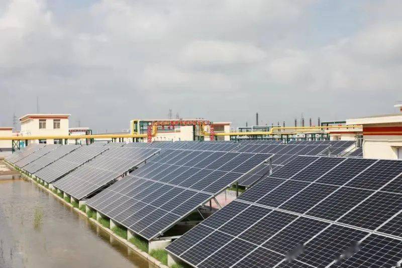 遼河油田歡三聯合站內光伏發電項目一期工程完工并網發電現場。