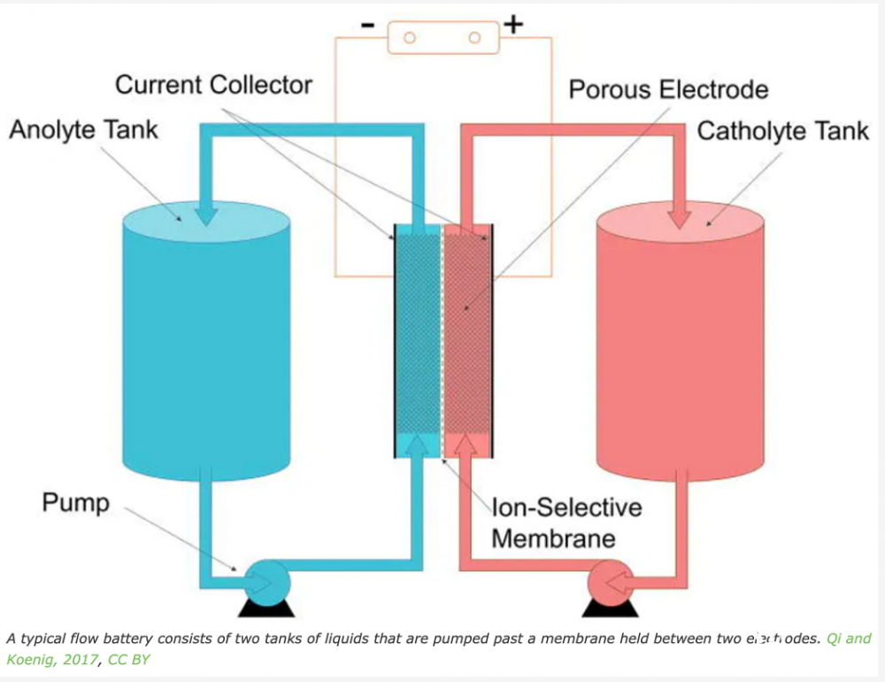 雖然固態電池非常適合消費電子產品和電動汽車,但對于大規模的能量儲存,科學家們正在研究液流電池,其電解液和電極都是液體。這種技術允許超快速充電,容易作出真正的大電池。目前,這些系統非常昂貴,科研的重點是降低成本。