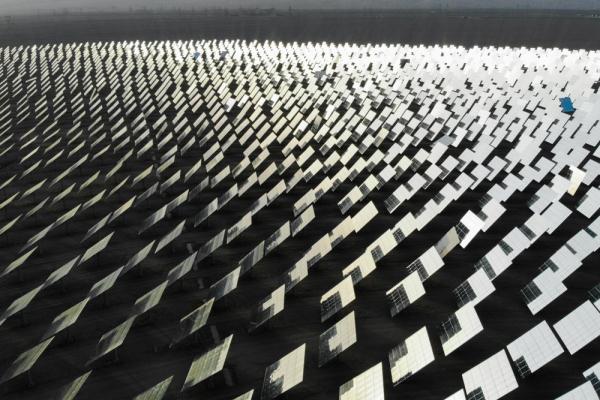 2021年2月24日拍攝的敦煌100兆瓦熔鹽塔式光熱電站(無人機照片)。新華社記者馬希平攝(資料圖片)