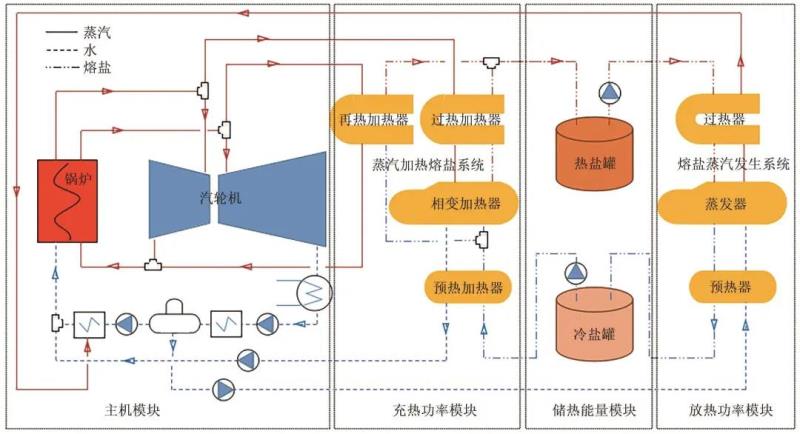 圖1火電機組百兆瓦級熔鹽儲能工藝流程