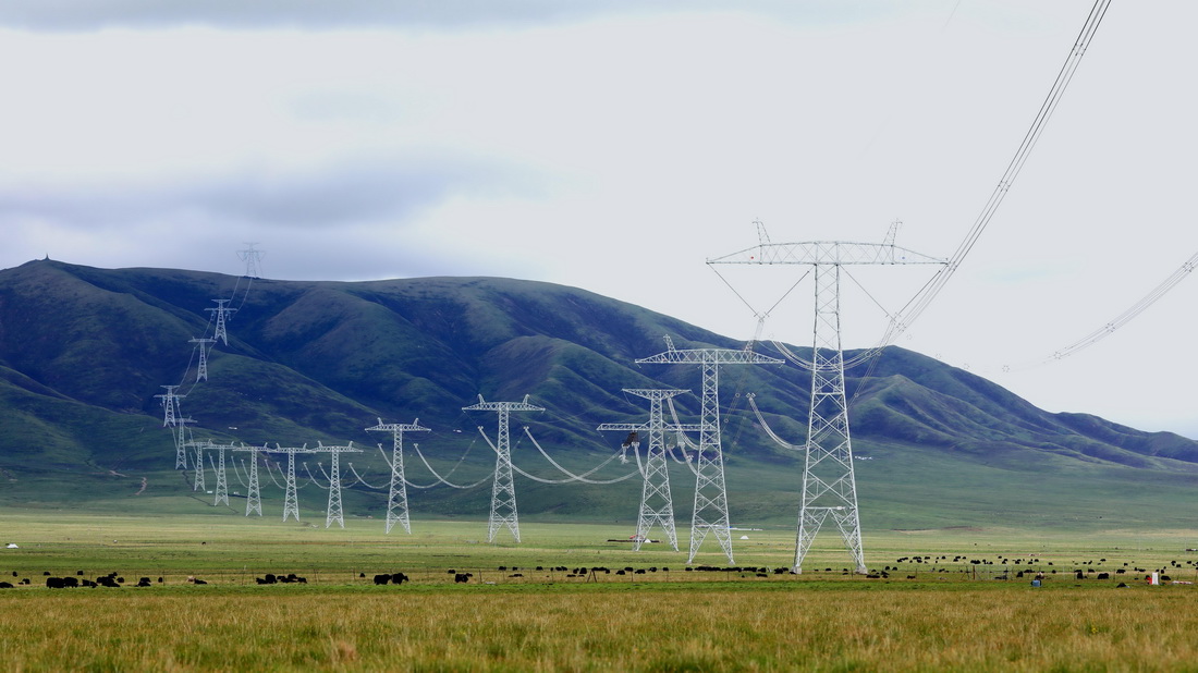6月17日在青海省黃南藏族自治州河南蒙古族自治縣拍攝的青豫特高壓直流工程。新華社發(謝莉蓉攝)