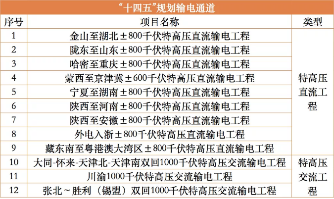 以下是本文件涉及的12條特高壓輸送通道:(糾正第4條為蒙西至京津冀±660千伏)