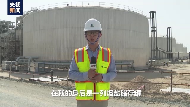 中央廣播電視總臺記者周宣近日來到了迪拜馬克圖姆太陽能公園四期項目所在地。據他介紹,與普通光伏電站只能在光照充足時工作不同,光熱電站項目的一大特點就是能夠在白天利用熔鹽大量儲存陽光充沛時產生的熱能,進而在夜間或者陰天時提供穩定的電力,做到24小時連續穩定地將太陽能轉化為電能。