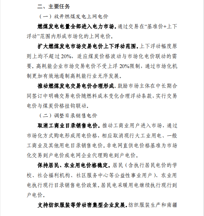 取消工商業目錄銷售電價。推動工商業用戶都進入市場,通過市場化方式購電形成用電價格,相應取消現行大工業用電、一般工商業及其他用電目錄銷售電價。