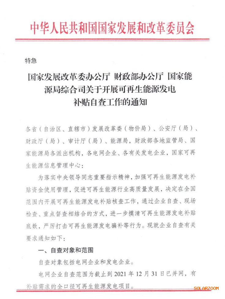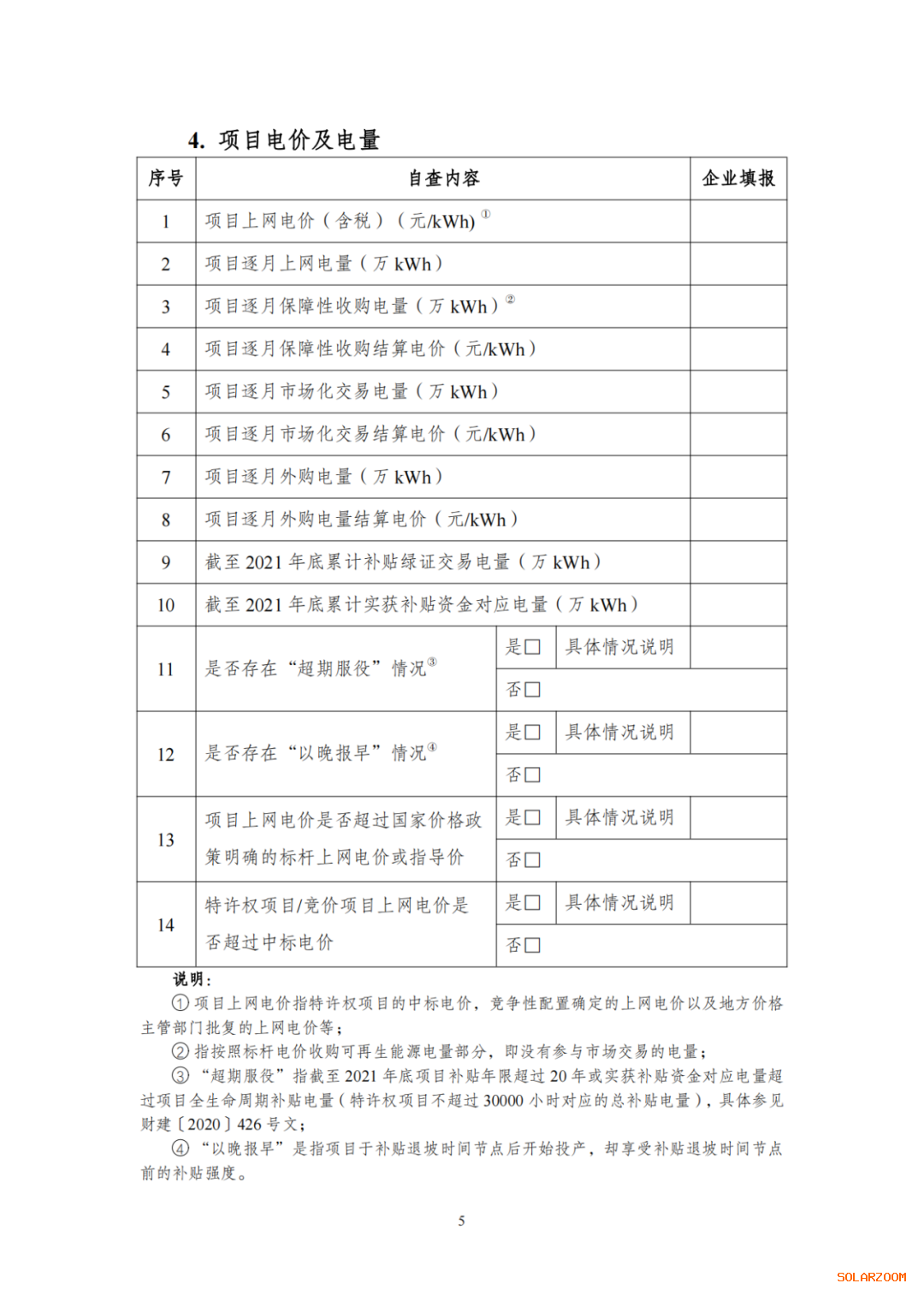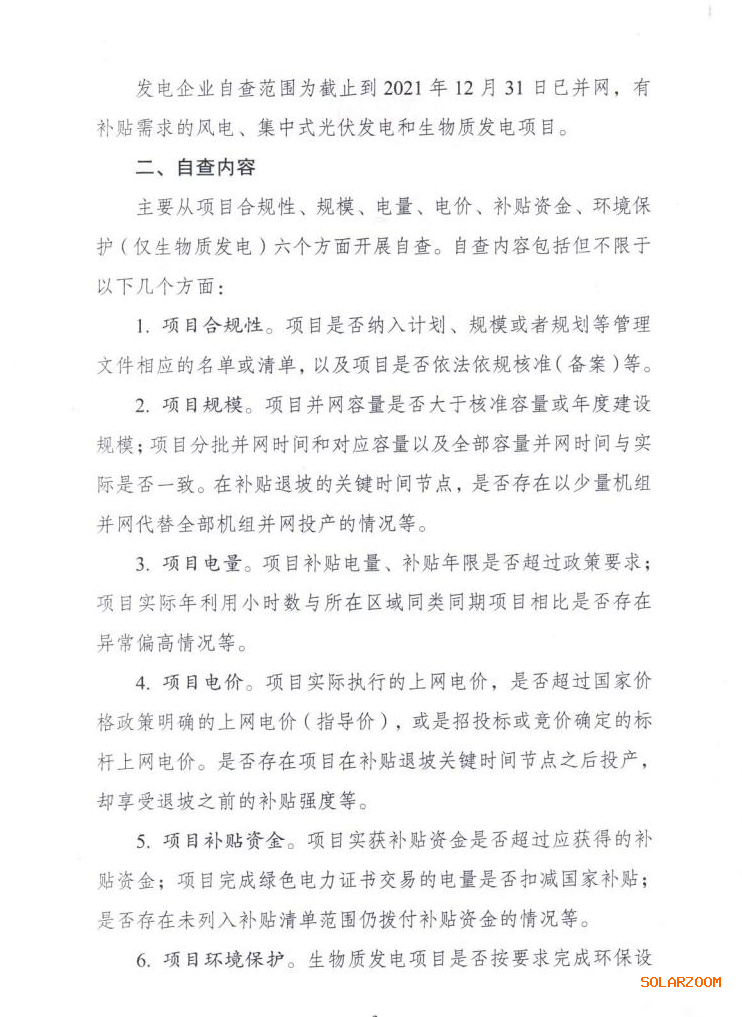 根據文件,自查對象包括電網和發電企業,范圍為截止到2021年12月31日已并網有補貼需求的全口徑可再生能源發電項目,主要為風電、集中式光伏電站以及生物質發電項目。