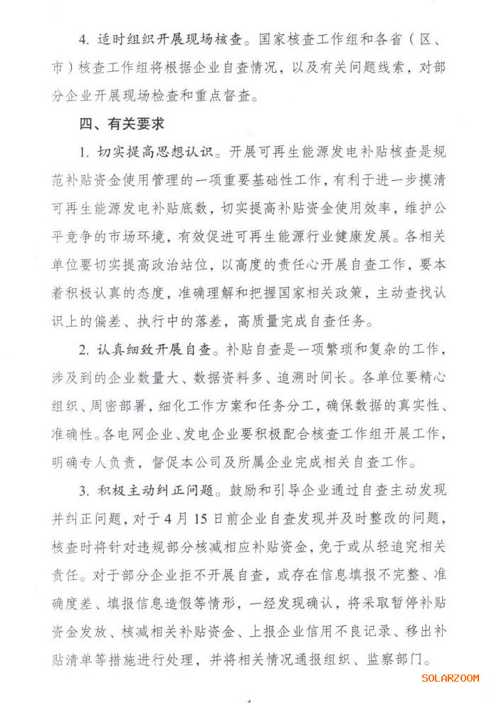文件表明,開展可再生能源補貼核查是規范補貼資金使用管理的一項重要工作,有利于進一步摸清可再生能源發電補貼底數,提高使用率。鼓勵企業通過自查主動發現并糾正問題,于4月15日之前上報并整改可針對違規部分核減相應補貼資金,或免于處罰。若局部開展自查或整改,將暫停補貼資金發放或核減相關補貼資金。