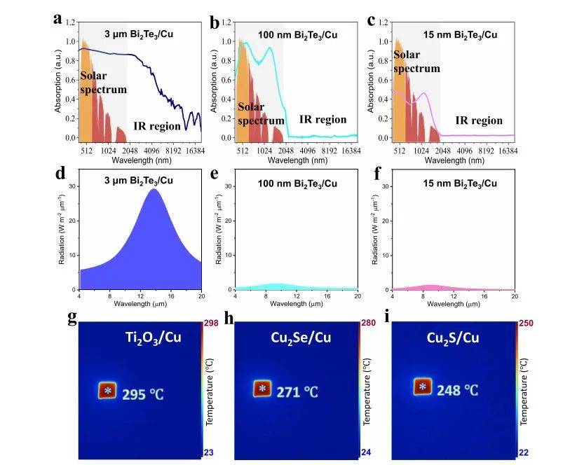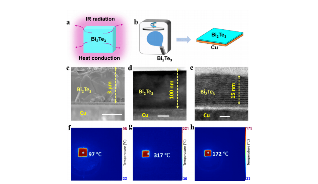具體來說,該團隊選擇碲化鉍(Bi2Te3)為吸光材料,原因在于它是典型的窄帶隙光熱材料,能有效吸收太陽光譜能量并轉化為熱能。