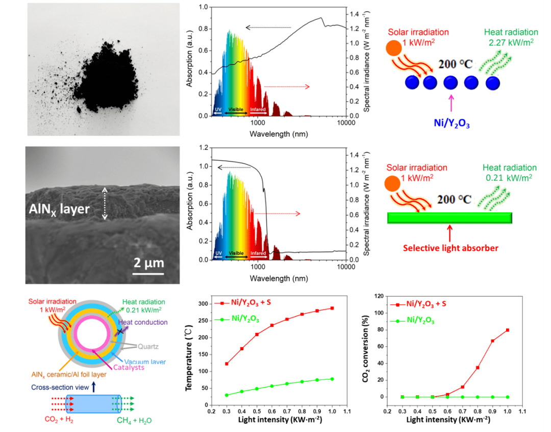 其表示,實現自然光熱催化是領域內的核心問題,關鍵在于提升光熱材料的太陽光輻照溫度。在該研究中,他將光學工程的“光譜選擇吸收策略”引入光熱催化領域,突破了自然光輻照下光熱材料溫度低的瓶頸問題。