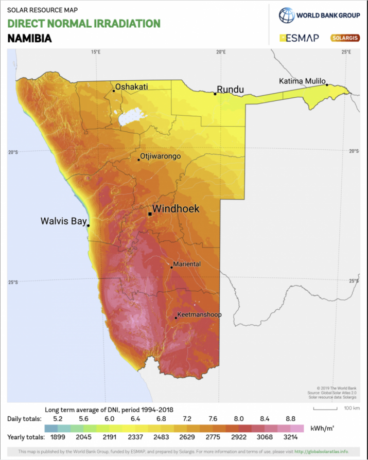 圖:納米比亞DNI條件(來自SolarGIS)
