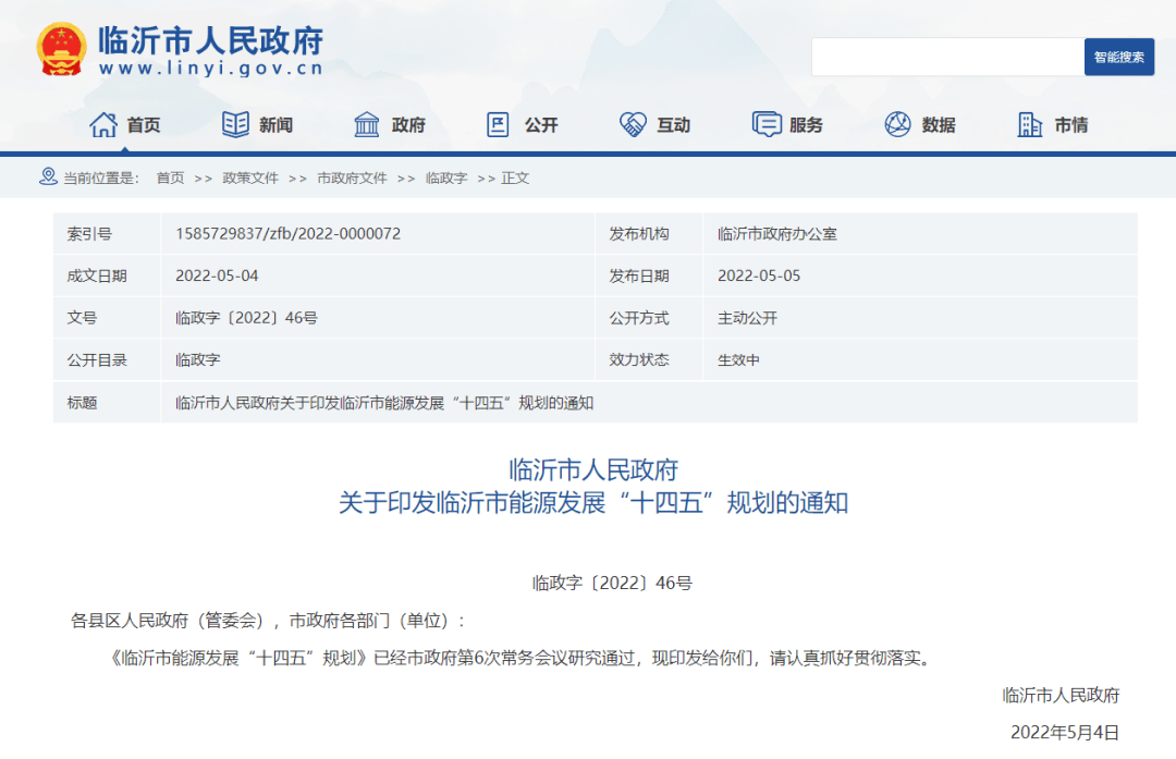 近日,臨沂市人民政府發布《關于臨沂市能源發展“十四五”規劃的通知》。