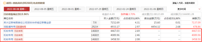 8月8日,其核心個股首航高科獲龍虎榜機構席位大買,三機構聯合買入累計1.2億。東北證券最新研報指出,這是近幾年來機構首次正式買入這個票。而自7月18日的相對低點以來,公司股價17個交易日內已經大漲接近70%。