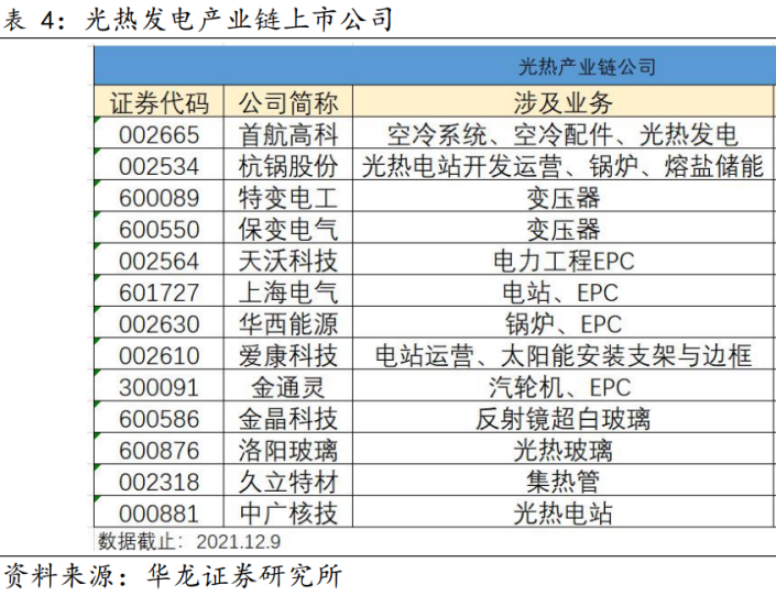 2)調節能力強:據《2021年中國太陽能熱發電行業藍皮書》,我國2018年并網的3座商業化太陽能熱發電示范項目的太陽能熱發電機組調峰深度最大可達80%,爬坡速度快。