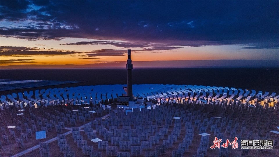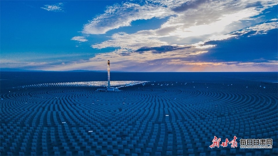 據新甘肅·甘肅日報最新消息,8月20日,敦煌光電產業園區內熔鹽塔式光熱發電站萬余面定日鏡以同心圓狀圍繞著260米高的熔鹽塔逐日發電。