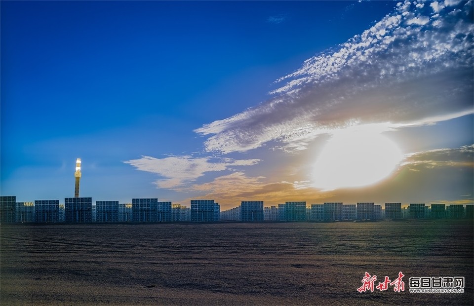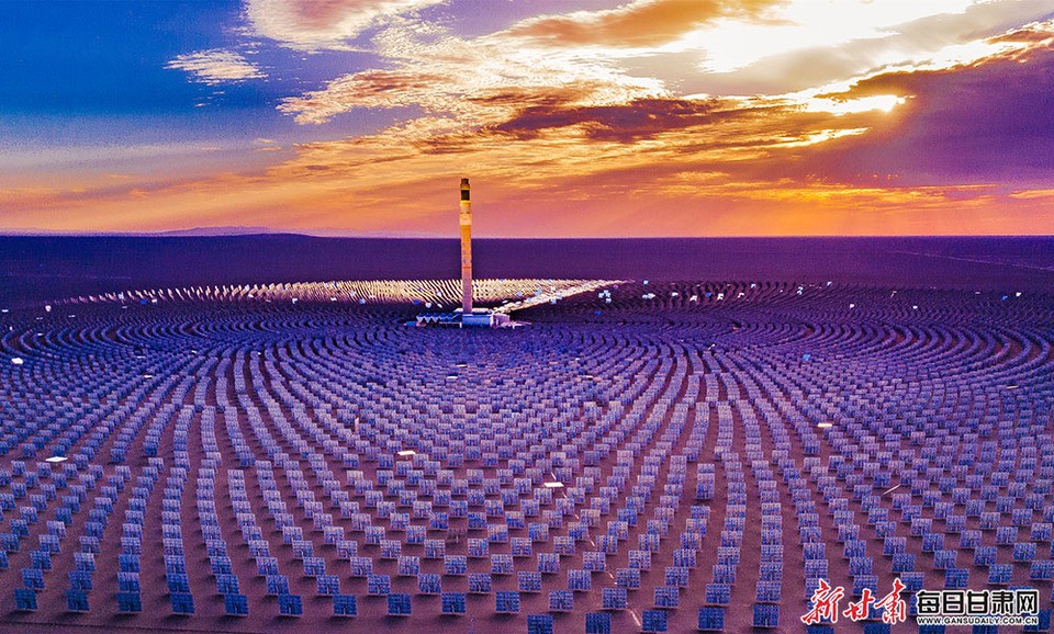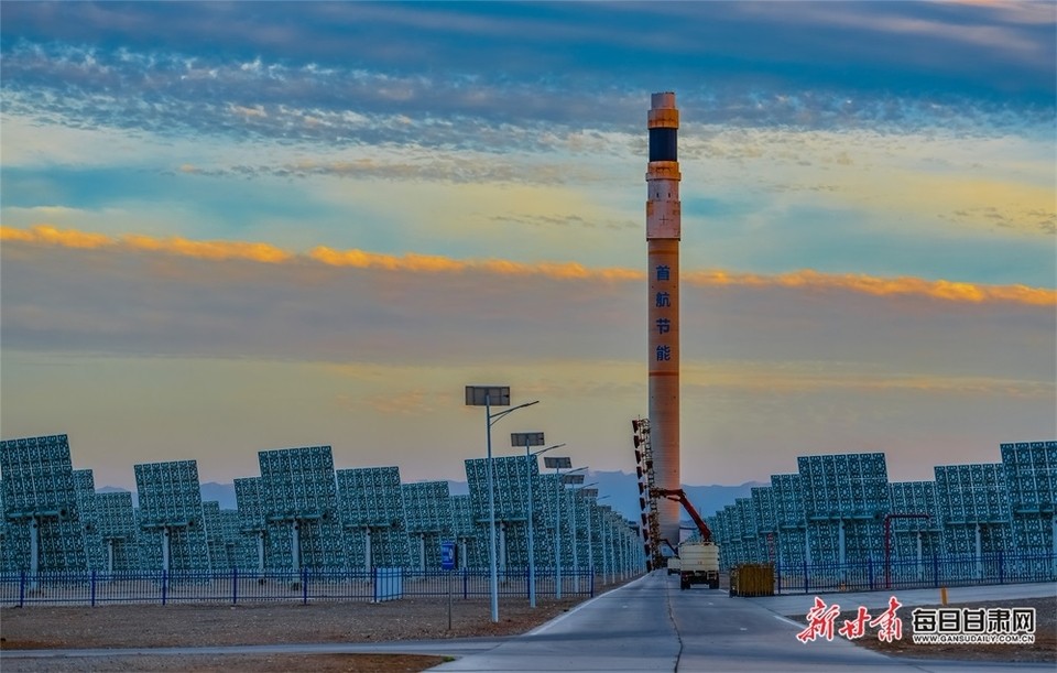 由敦煌首航節能光熱發電有限公司建設的敦煌10MW光熱電站項目、敦煌100MW光熱電站項目,目前兩個電站已經并網發電。電站內1.2萬余面定日鏡以同心圓狀圍繞著260米高的熔鹽塔,這些定日鏡在茫茫戈壁上夜以繼日“逐日”,讓“光”變成“電”,輸送至千家萬戶。