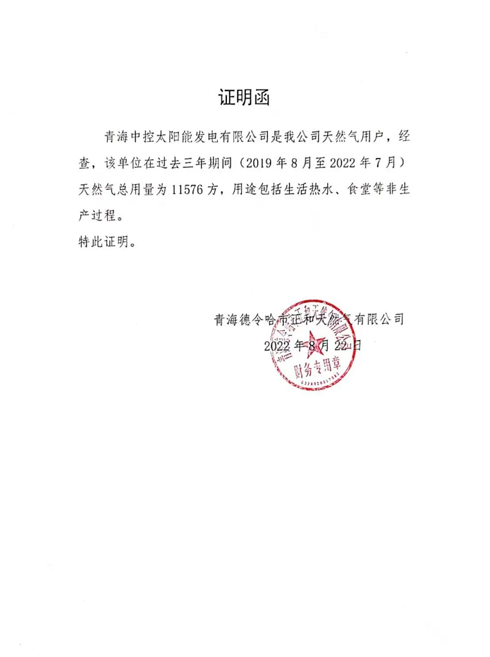 金建祥:真實情況我們在《聲明》里已經說得非常清楚了。首先,青海中控德令哈50MW光熱電站自投產以來,從未使用任何天然氣補燃;同時,我們在《聲明》里還提供了德令哈市唯一一家天然氣供應商德令哈市正和天然氣有限公司出具的青海中控太陽能發電有限公司自2019年7月底電站移交生產運行以來至今三年的天然氣用量證明,最近三年青海中控全部天然氣用量為11576方,月均用量約321.56方,我想這個數字已經足夠說明問題了。