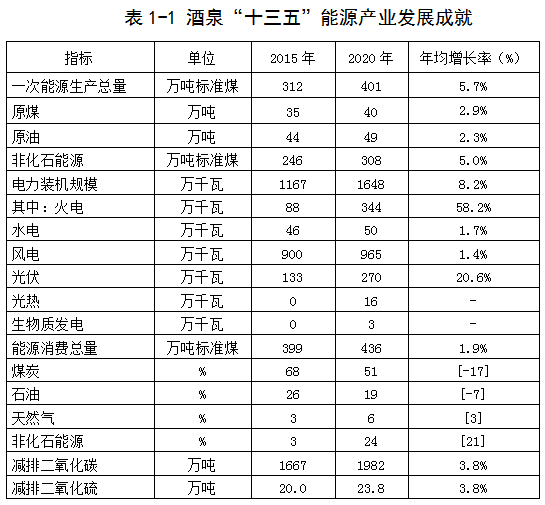 表1-1 酒泉“十三五”能源產業發展成就