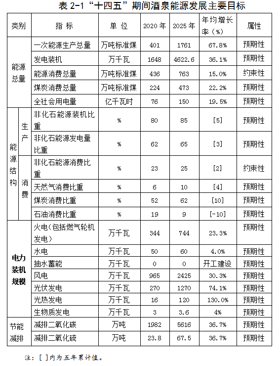 酒泉市“十四五”能源發展規劃