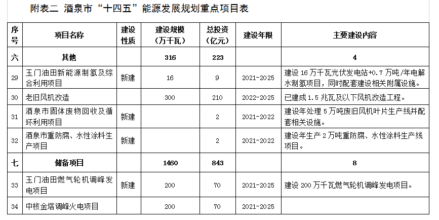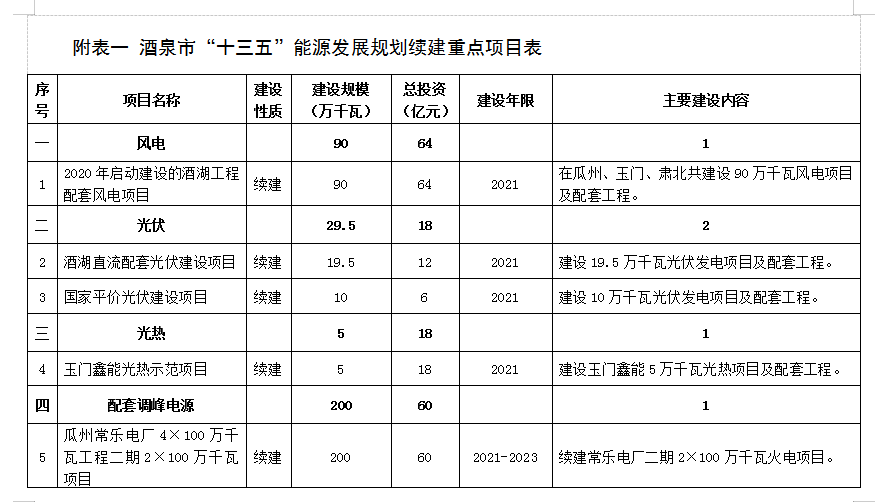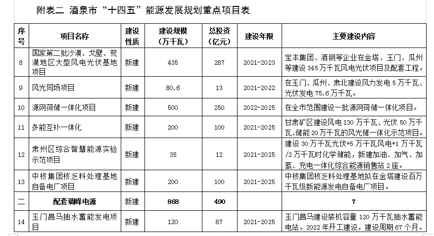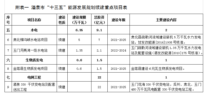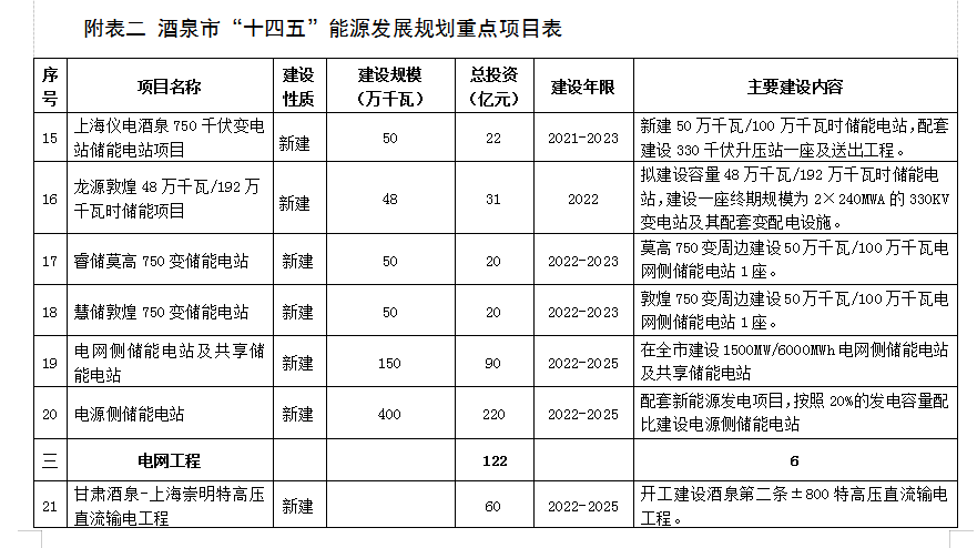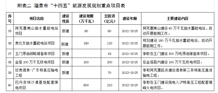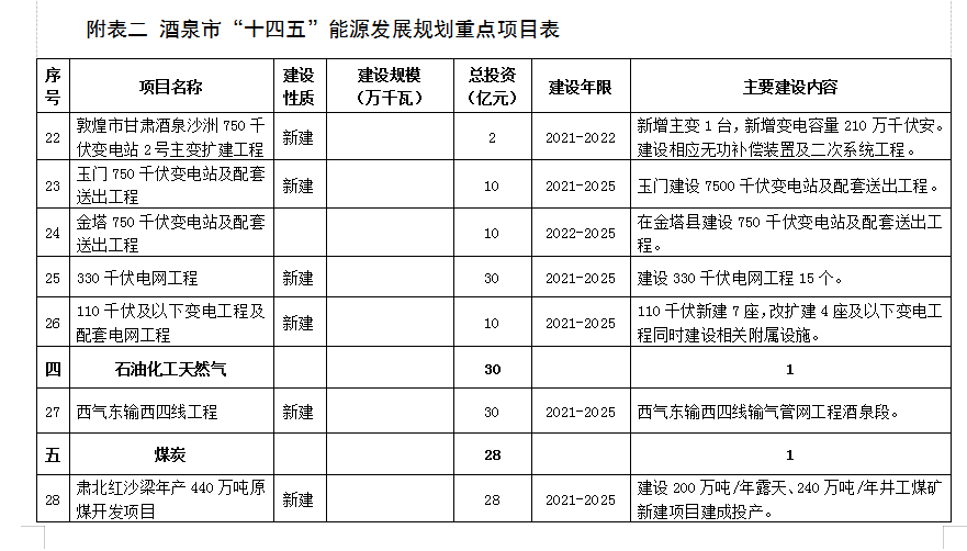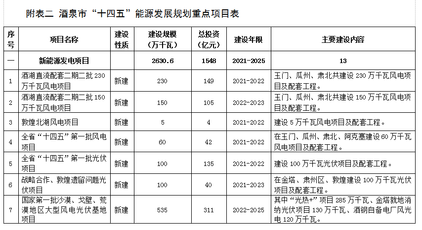 附表二 酒泉市“十四五”能源發展規劃重點項目表 (76)
