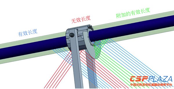 肖特太陽能熱發電事業部專利設計的帶有反射鏡的保護罩能將鏡場效率提高百分之二,無需太多努力!反射鏡將原本應該照射到保護罩上的太陽光進行再次反射只吸熱管上,從而增加了有效吸熱長度。
