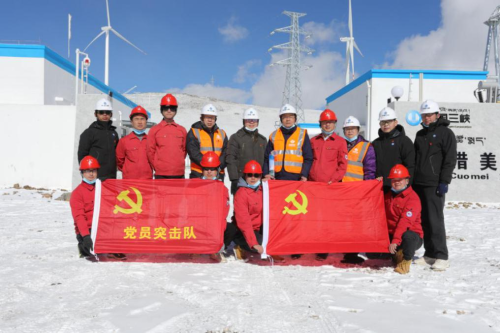 圖:可再生能源質監黨員突擊隊在海拔超5000米的西藏哲古風電場現場質量監督