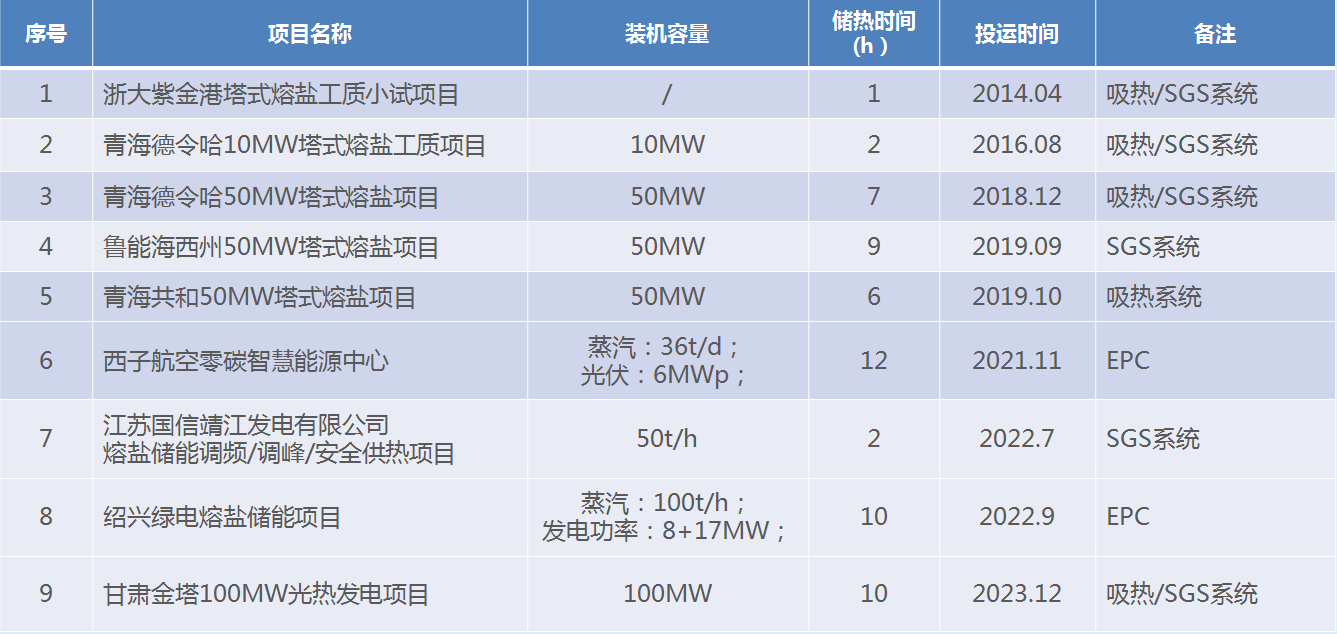 圖:西子潔能光熱和熔鹽儲能市場主要業績