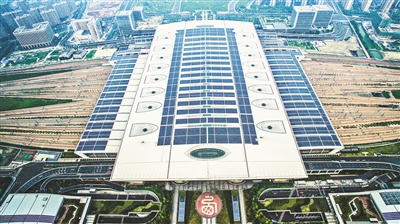 “雙碳”背景下,“光伏+污水廠”模式正開辟著杭州綠色低碳的發展新路徑。在杭州,光伏產業還與農業、工業、公共建筑、交通等領域相結合,成為推動節能減排的重要力量——由正泰新能源投資建設的杭州火車東站屋頂分布式光伏發電項目、杭州市民中心裙樓屋頂分布式光伏電站項目等有序運轉;杭州舒能82兆瓦漁光互補發電項目,通過“光伏+漁業”的融合發展,推動“水上發電、水下養殖”的綠色發展模式走深走實……