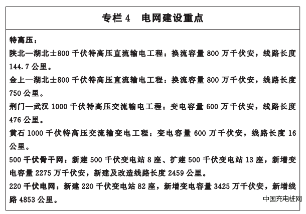 提升城市供電能力。圍繞外電疏散、三峽留存、電源接入、斷面卡口、網間聯絡,建設一批500千伏、220千伏主網工程,形成鄂東負荷中心(武漢、黃石、黃岡、孝感、咸寧)、鄂西北(襄陽、十堰、隨州、神農架)和鄂中西(宜昌、荊州、荊門、恩施、仙桃、潛江、天門)分區分片的保供體系,服務“一主引領、兩翼驅動、全域協同”區域發展布局。圍繞工業園區和重大項目用電需求、城市老舊小區改造、分布式電源廣泛接入、電動汽車和數據中心等新型負荷發展需求,推進城市配電網改造升級。武漢市建成世界一流城市電網,襄陽、宜昌城市電網達到國內同等城市先進水平,其他城市電網供電水平明顯提升。新增變電容量6000萬千伏安、各電壓等級線路7000公里以上。