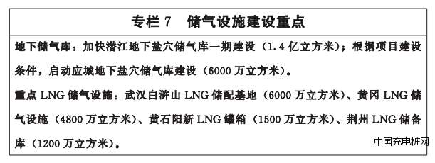 加快油氣儲備能力建設。堅持規模化、集約化建設運營原則,鼓勵各類主體投資建設儲氣設施,加快構建以地下鹽穴儲氣庫、沿江LNG儲運站和大中型LNG儲罐為主,地方小型應急儲氣設施為輔,管網互聯互通為支撐的儲氣體系。制定落實儲氣能力建設實施方案,重點推進潛江地下鹽穴儲氣庫,武漢白滸山和黃岡等地LNG儲氣庫建設,形成潛江、武漢、黃岡三大儲氣基地。組織各地及城鎮燃氣企業加強與省內外重點儲氣設施合作,優先依托屬地及周邊“大庫大站”履行儲氣責任,支持不具備建設條件的地方和城鎮燃氣企業以租賃、購買方式完成儲氣能力建設目標任務,到2025年全省儲氣能力達到6.5億立方米。按照國家要求,落實地方政府成品油儲備和企業社會責任石油儲備。