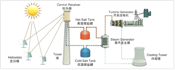 2.1 熔鹽儲熱在光熱發電中的應用