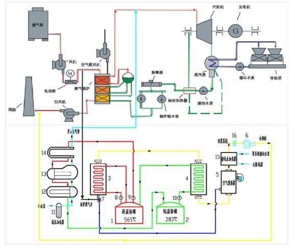 圖9:熔鹽儲熱在煤氣發電調峰中應用的技術路線