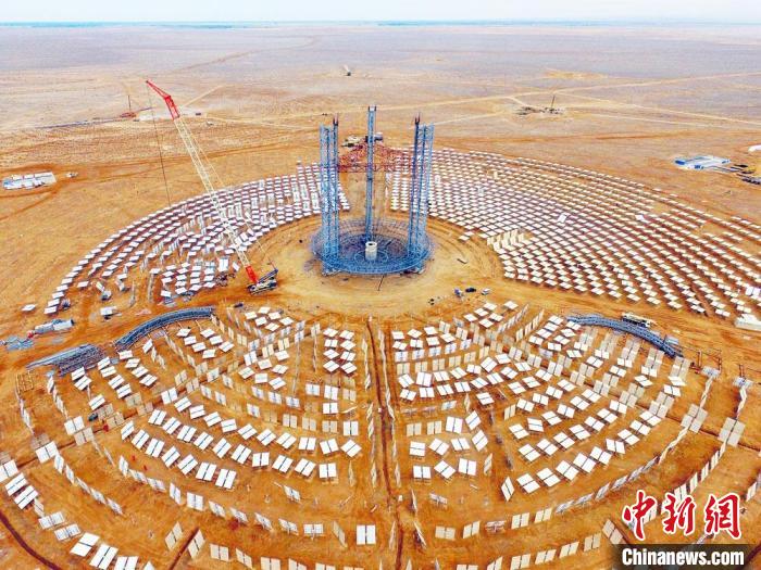 近年來,光熱發電產業成為甘肅酒泉市玉門市新名片。圖為玉門鑫能5萬千瓦光熱項目建設工地。楊陽攝