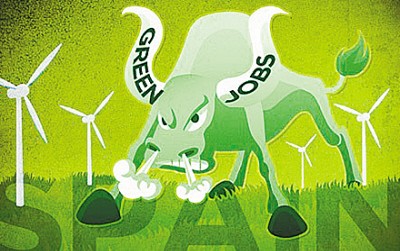 西班牙長久以來都站在發展綠色能源的前沿。2007年,在經濟危機開始之前,西班牙政府決定以提高補助的形式投資綠色能源——將太陽能補助價格提升至常規電力補助價格的12倍。西班牙能源巨頭們——Iberdrola、Endesa 和Acciona紛紛全力往各自的電網組合中加入清潔能源。農場主和其他私產擁有者也紛紛趁機貸款修建相關設施設備。因此,風電設施和太陽能電池板在西班牙城市的郊外隨處可見。
