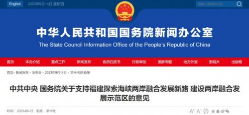 9月14日國新辦就《中共中央國務院關于支持福建探索海峽兩岸融合發展新路建設兩岸融合發展示范區的意見》舉行發布會。