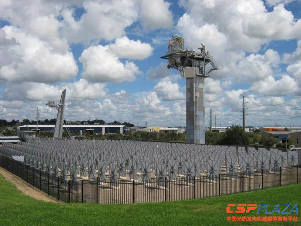 CSIRO在2010年又在上述的示范項目旁邊開始建設一個1MW熱功率的塔式示范電站,并于2011年建設完成,這就是采用布雷頓空氣循環的塔式示范電站。該電站的集熱塔高30米,安裝450面定日鏡。