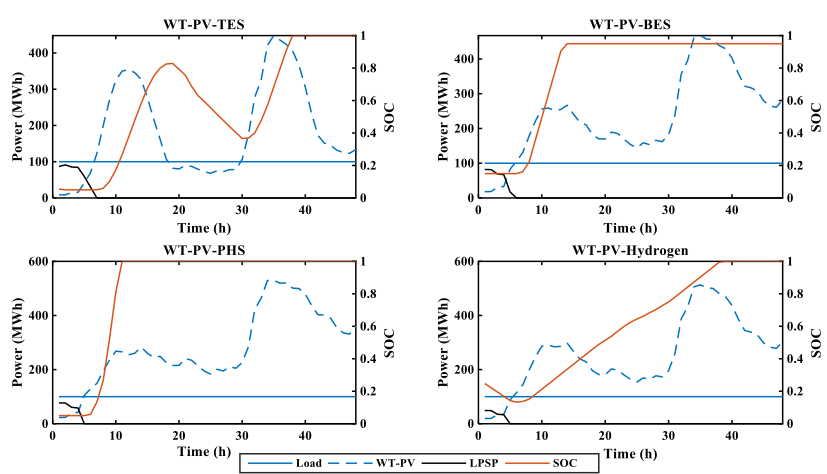圖:含不同儲能技術的可再生能源多能互補發電系統仿真運行
