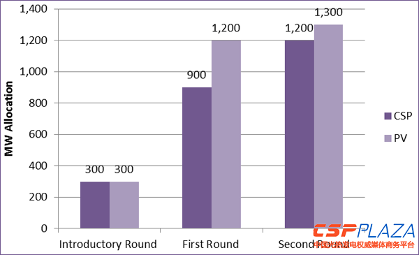 按此前獲得的消息,其中先導性的項目招標將包括300MW光伏發電和300MW的光熱發電,但這一數據目前還未正式公布,正在修正中。從2012年起的未來5年內,沙特計劃開展兩大輪項目招標,未來的第一輪項目招標將包括900MW光熱發電和1200MW光伏發電,第二輪招標將包括1200MW光熱發電和1300MW光伏發電。