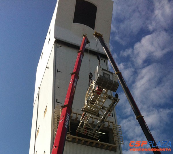 該測試裝置安裝于該示范電站的主吸熱器的下方,是DLR開發的新一代接收器,目的是實現更高的集熱效率和發電效率,從而提升塔式技術的成本經濟效益。
